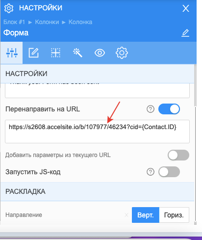 5) Выдели форму и в настройках добавь ссылку на созданный в пункте 1 чат бот. (см. Скриншот 1)